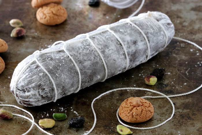 The long cylinder shape of this popular sweet treat has only a physical resemblance to an actual salami, I assure you!
