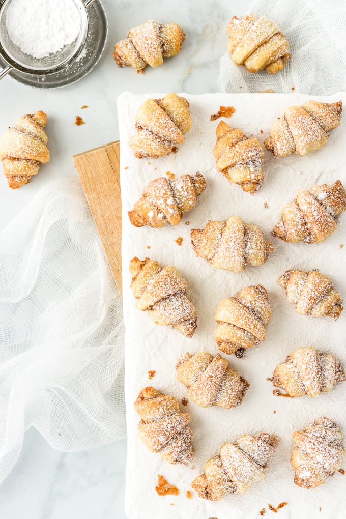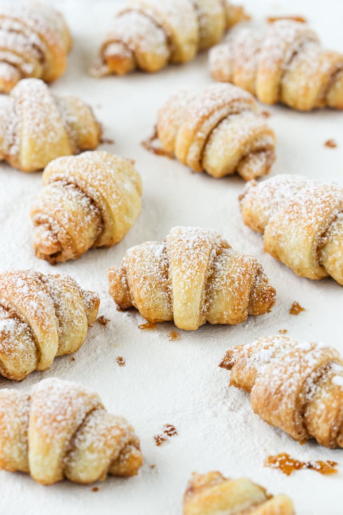 This way you can bake a small batch whenever you need. Simply thaw the dough overnight in the fridge and follow the instructions for rolling, filling and forming the crescents.
