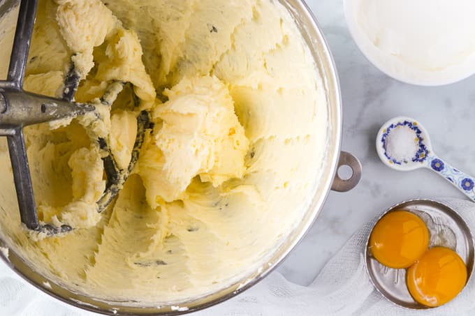 - In the bowl of a stand mixer, cream the butter for 30 seconds.
