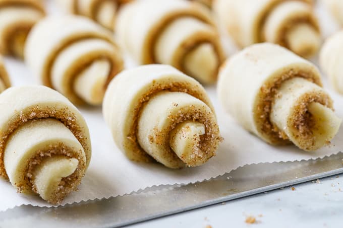 These are delicious. Dough is easy to roll-out. I love the cinnamon filling provided in the recipe. I prefer these to rugalach dough as these are lighter and more delicate. I’ll try a couple fillings made from prunes and poppy seeds for variety.