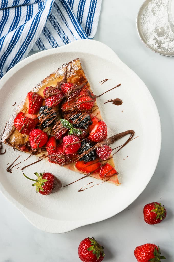 I find it has such a rustic appeal all on its own. However, once dusted with powdered sugar…then filled with berries…and topped with a drizzle of warm Nutella…it’s elegant enough for special company!