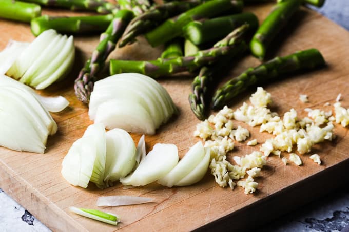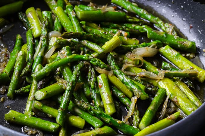 It’s more than enough time to sauté the onions with the asparagus which take about 6 to 8 minutes of cooking time.