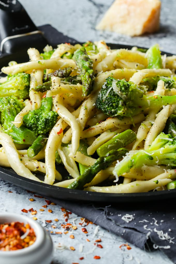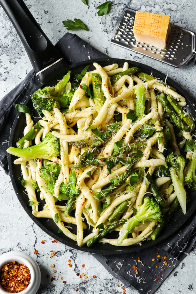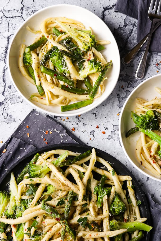 Very underrated recipe. Small, simple, natural ingredient list. Easy and quick to make, delicious with the broccoli-asparagus combo. Only variation I did was to substitute vegan “parmesan” (really just crushed cashews and nutritional yeast). Excellent recipe, thank you.