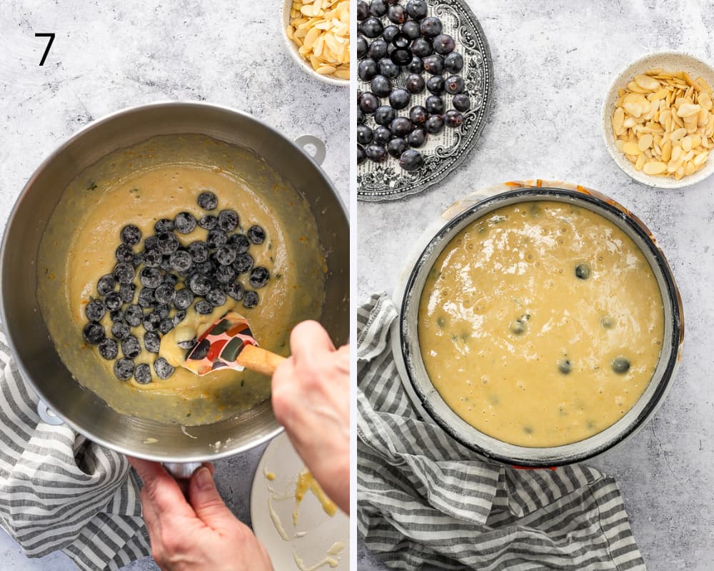 - Sprinkle the remaining 1 cup of grapes evenly over the cake batter and top with sliced almonds. (No need to flour the remaining grapes; they will rest on top of the batter)