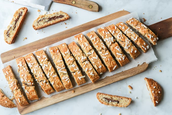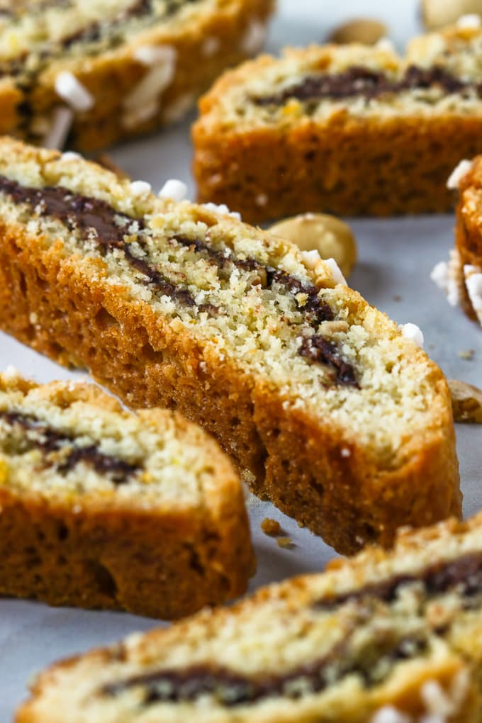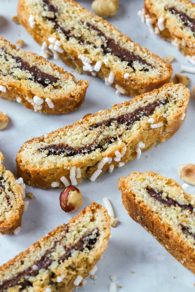 These hazelnut biscotti filled with Nutella stand apart from the more traditional twice baked variety.