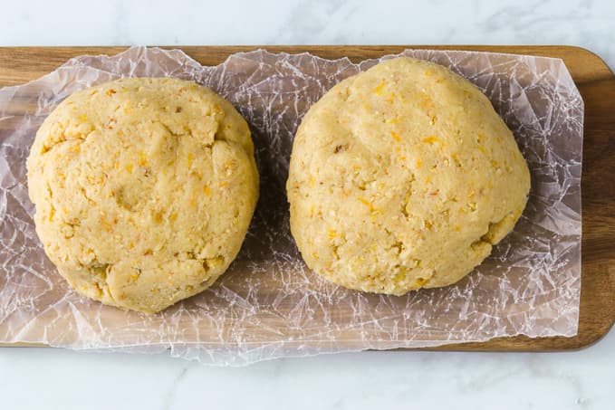 - Divide the dough into 2 equal pieces.