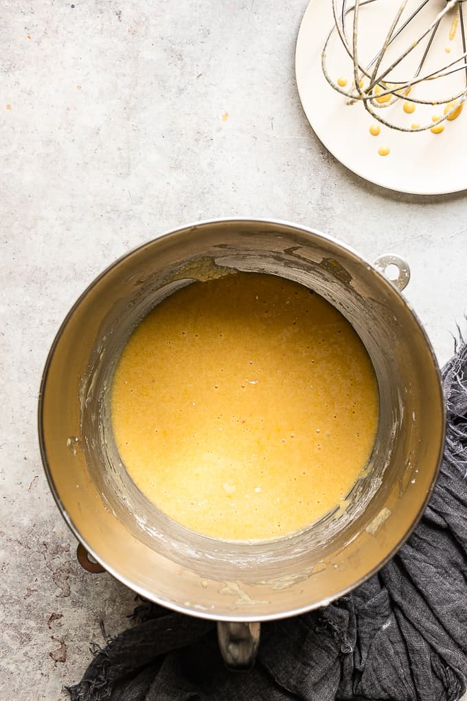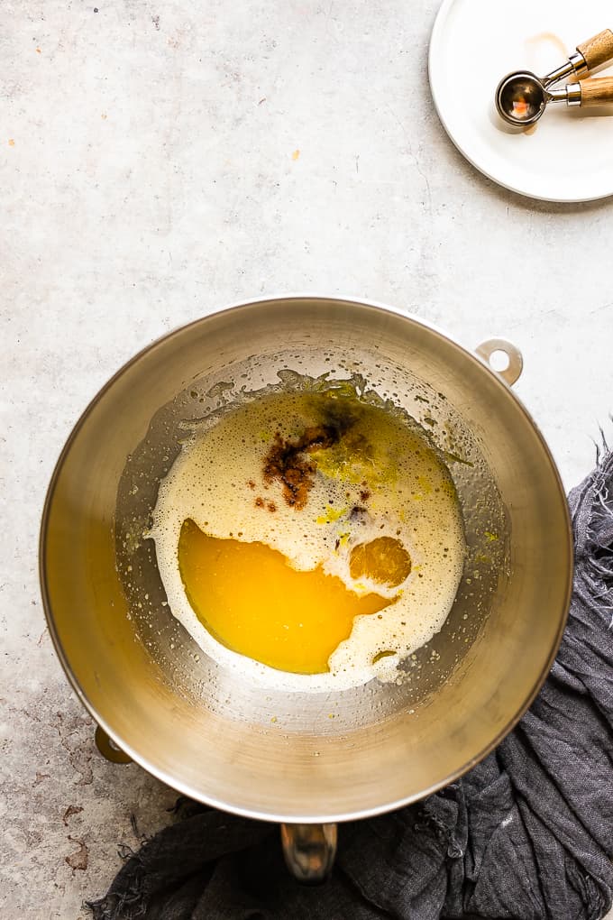 - Step 3: In the bowl of a stand mixer, with the whisk attachment, beat together the granulated sugar and eggs for about 2 minutes.