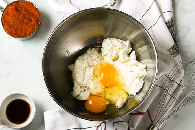 - Add the pumpkin purée and vanilla extract to the ricotta mixture and mix till well combined.