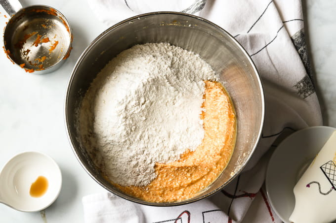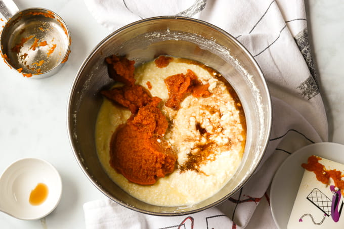 You’ll then mix in the pumpkin purée and vanilla extract.