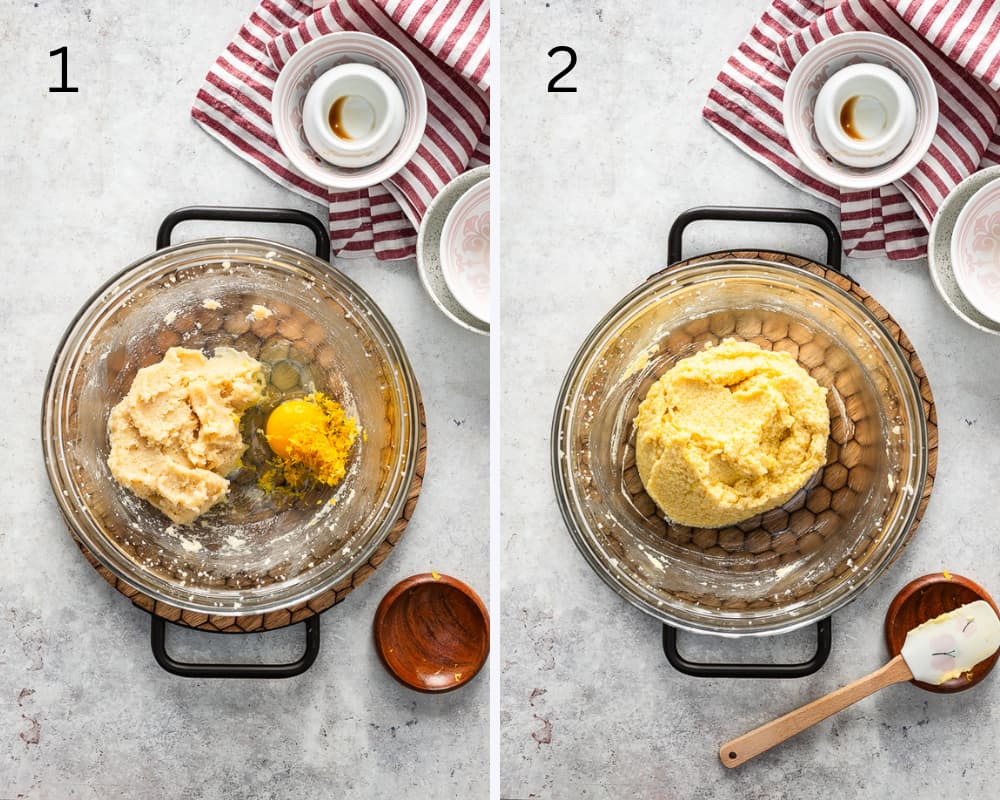 - Add the egg and the lemon zest to the mixture and blend until combined.