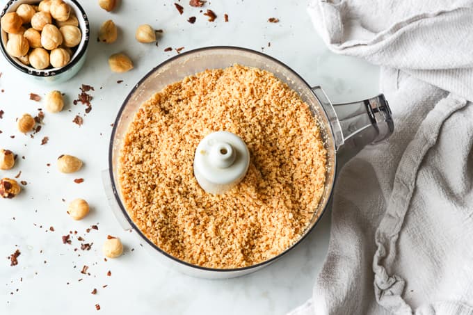 Let them cool completely before grinding them in a food processor. Then simply grind them to a super fine consistency.
