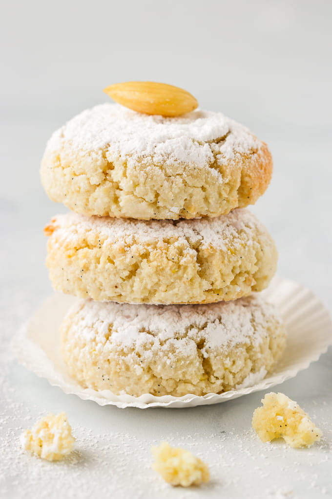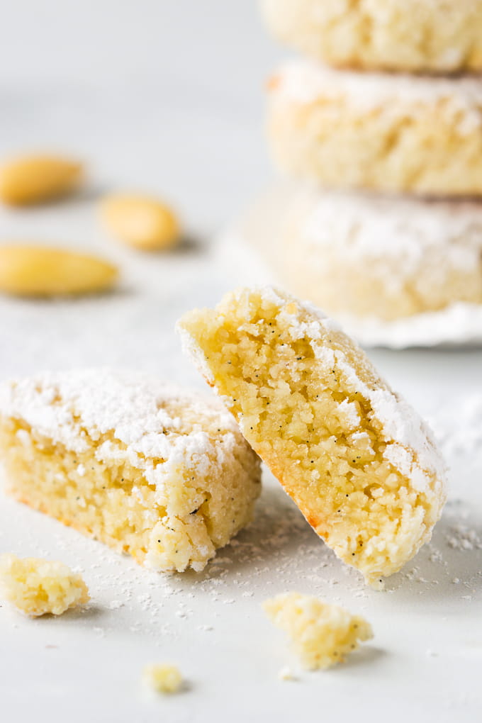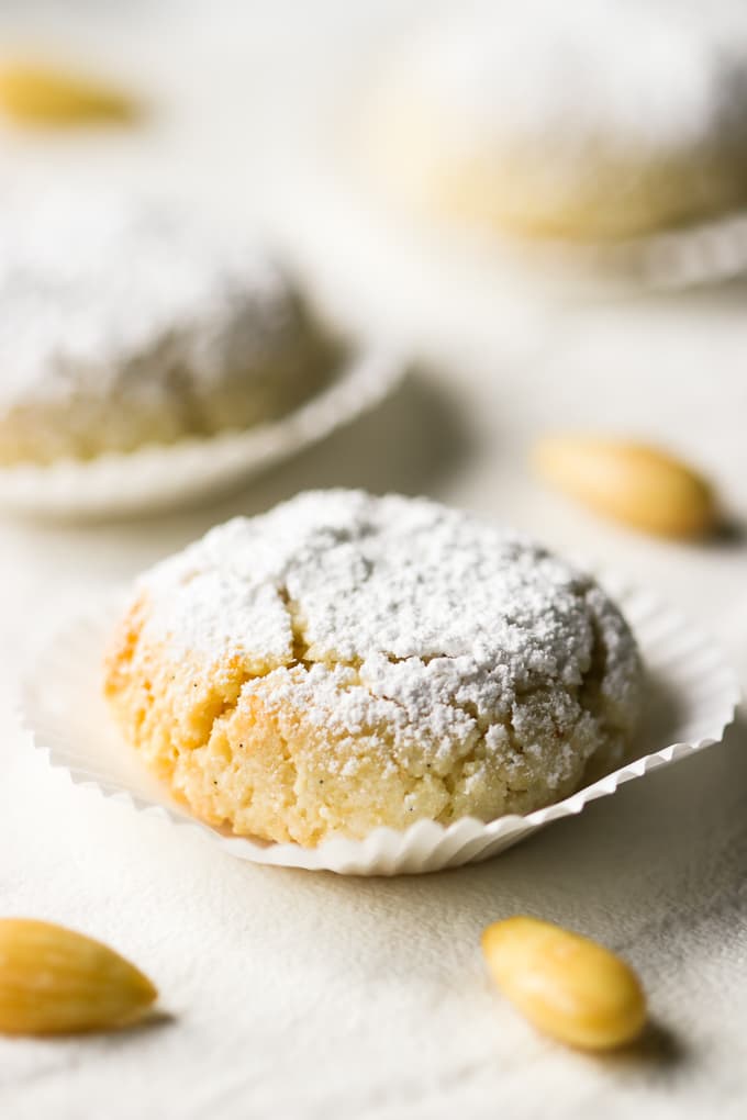 These Italian paste-like cookies are lemon scented and also wonderfully perfumed with the seeds of a vanilla bean. They also pack an intense almond taste that we so love in our almond flavoured desserts.