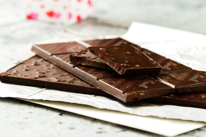 For this recipe I used dark chocolate raspberry bars from Lindt Chocolates but feel free to use any brand you like!