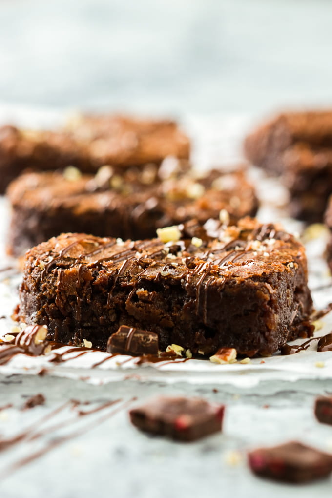 After one blissful bite of these moist fudgy brownies with that burst of sweet raspberry goodness, I kind of wondered why it took me so long to make again!