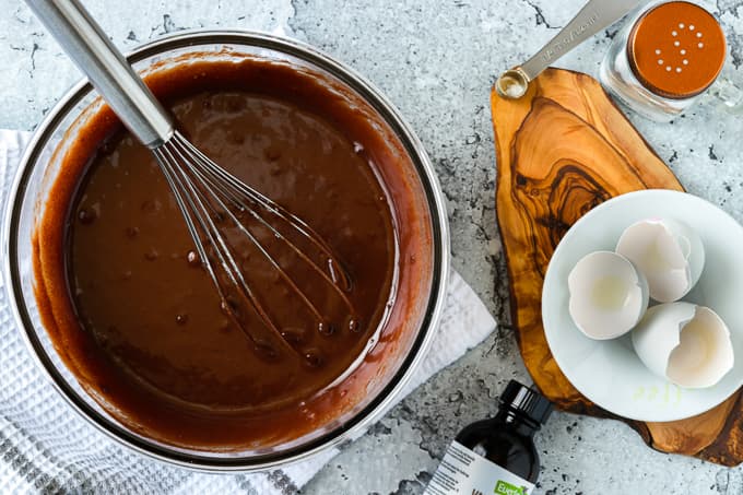 Melt the butter and chocolate together. You can do this in a microwave or over a double boiler. Either will do just fine.