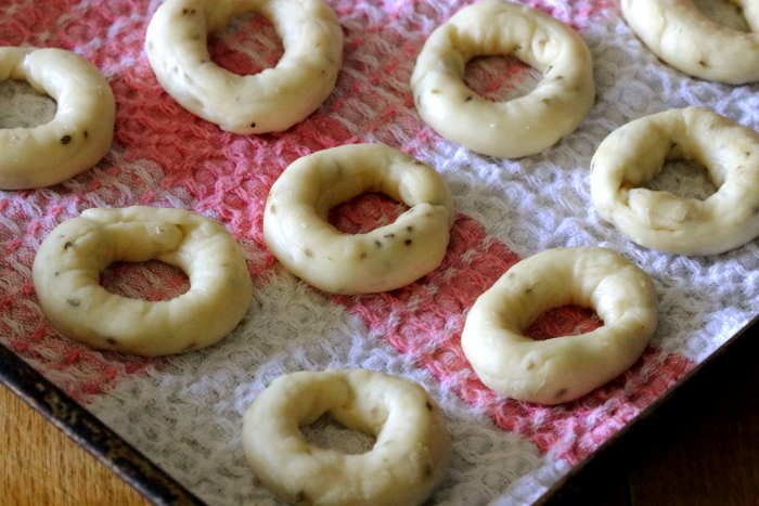 - Transfer the taralli on baking trays lined with a clean kitchen dish towel.